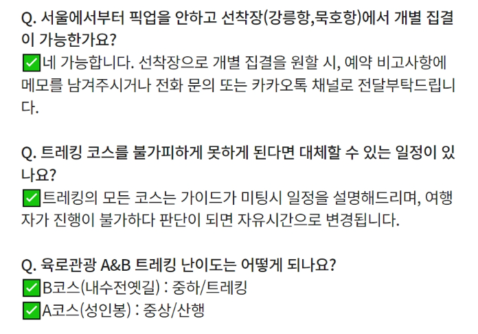 - 기상 및 선사 사정에 의해 선박시간이 변동될 경우 자유시간이 줄거나 늘어날 수 있으며, 의에 대한 환불은 불가합니다.