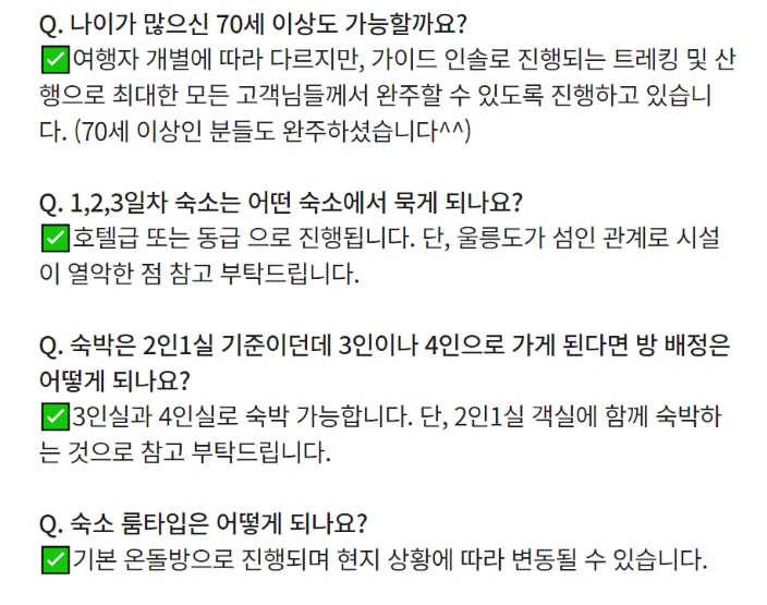 - 천재지변에 따른 결항의 경우 현지 체류비용은 개별부담입니다.